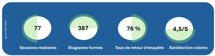 Chiffres issus de notre dernier bilan pédagogique et financier (BPF 2025) :